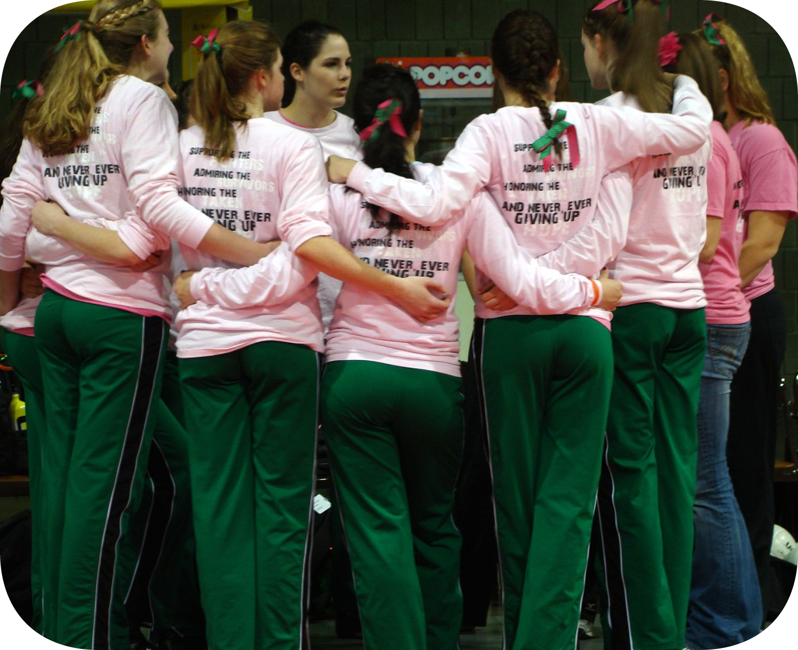 I never imagined a day when I would traipse through an overwhelming haze of pink with my head held high and a pleasant grin on my face. That color for me is usually an automatic upset stomach and a dose of Tums or Advil, but on the 2nd day of Big South, its effect was quite the opposite. Pink became more than just the combination of red and white paint, or a sad reminder of unromantic Valentine’s Days of the past; it was unity. It was solidarity, support for an honorable cause. Not only that, but it was everywhere. From special uniforms to sparkle headbands, girls, boys, women, and men alike went out of their way to display their concern for a harsh reality and their hope for a better tomorrow.