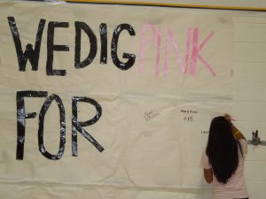 For me, going through this process acted as a healing aid. As I began to understand all of the different ways that I could help the cause, pieces inside of me began to fix and grow stronger. Sharing this therapy with my community brought everyone closer together. Regardless of if they had any personal connection to cancer, the aura of happiness, cooperation, and pure enjoyment proved to be contagious. It wasn’t too long until people that I didn’t even know started coming up to me and offering to help with any ideas that I would come up with over the next two years. My high school’s 2012 Dig Pink event really brought everything together. Motivation lurked in the eyes of all my team mates and we set our goal high and achieved even higher. Pink became our unifying color and encompassed our community.